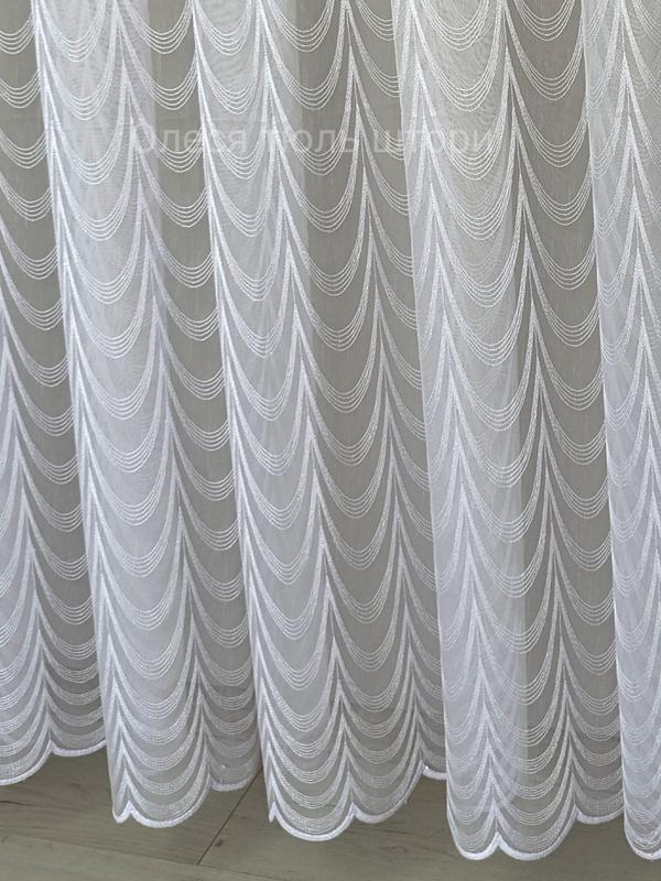 Тюль з високою вишивкою по низу, основа бамбук, колір білосніжний 🔥