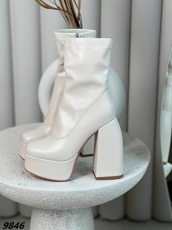 Ботильйони Сезон демі Матеріал еко-шкіра Всередині байка Колір беж Висота каблука 14 см Висота підошви попереду 4 см Висота взуття від п'яти 18,5 см На блискавціРозмірна сітка: