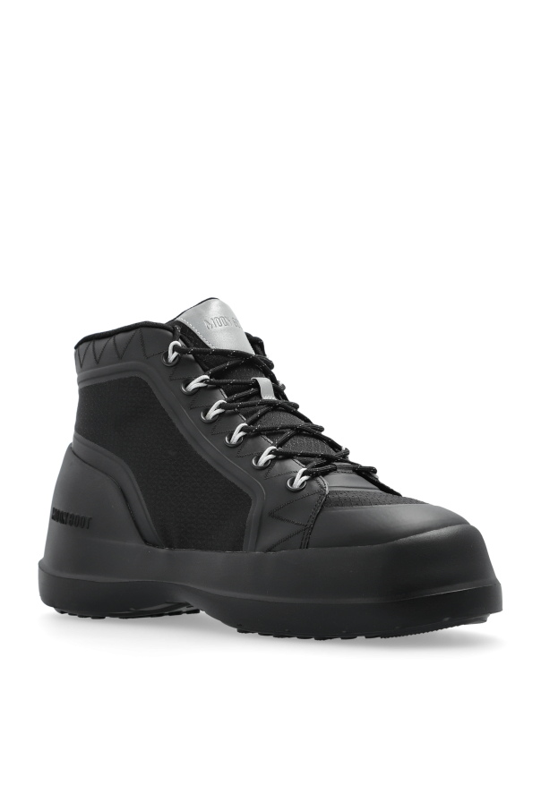 Introducing the MB Luna Trek Mid Nylon, an exquisite pair of men's snow boots that epitomize the perfect blend of functionality and avant-garde style. Crafted with meticulous attention to detail, these boots feature a robust, high-profile design, synonymous with traditional snow boots, yet infused with contemporary flair. The exterior is a sophisticated amalgamation of matte and glossy materials, complemented by a mesh side panel for enhanced ventilation. The Moon Boot brand, prominently displayed on the tongue, speaks to a legacy of innovation and distinctive style initiated by Giancarlo Zanatta in the '70s. With elegant black as the predominant color, these boots offer a versatile aesthetic that seamlessly integrates into any wardrobe. The sturdy lacing with metallic eyelets and a thick, durable rubber sole ensure optimal insulation against the harshest winter conditions. Why Purchase This Product? High-quality materials for durability and comfort Stylish design with iconic branding Excellent insulation and protection from cold Mesh panel for better ventilation Versatile black color suitable for various outfits