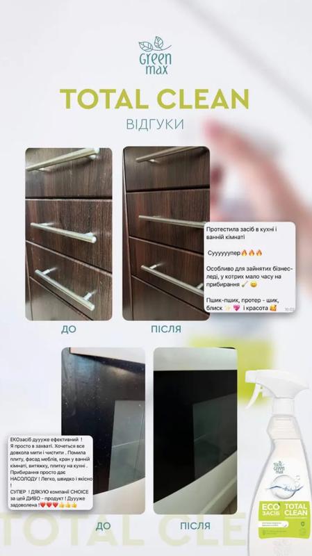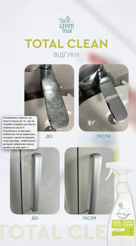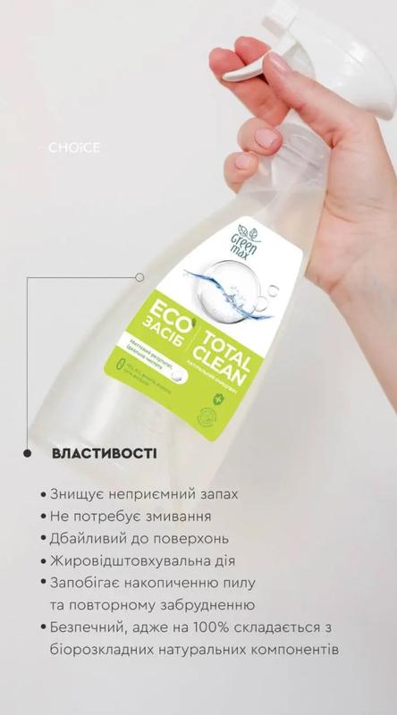 Многофункциональный очиститель Total Clean для ежедневного использования обеспечивает исключительную чистоту и безупречный блеск, не оставляя после себя едкого и токсического налета. Быстро и эффективно удаляет пятна от пищевых продуктов, известковый налет, жировые и другие бытовые загрязнения, уничтожает неприятные запахи лука, чеснока, рыбы и т.д. Пространство становится чистым, естественно свежим и безопасным благодаря мощным натуральным компонентам. Специальная формула средства оказывает жироотталкивающее действие, предотвращает накопление пыли и повторное загрязнение поверхностей в течение длительного времени. Деликатный к поверхности. Не требует смывания. Имеет приятный свежий аромат лимона.