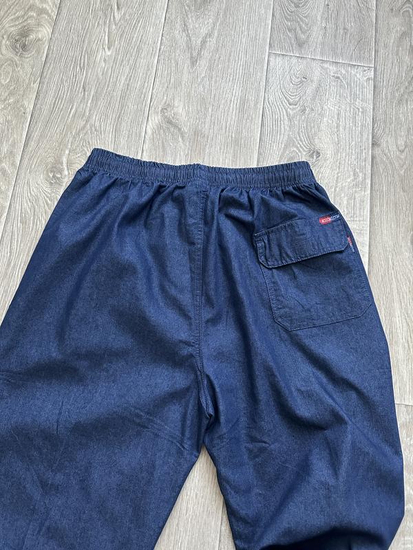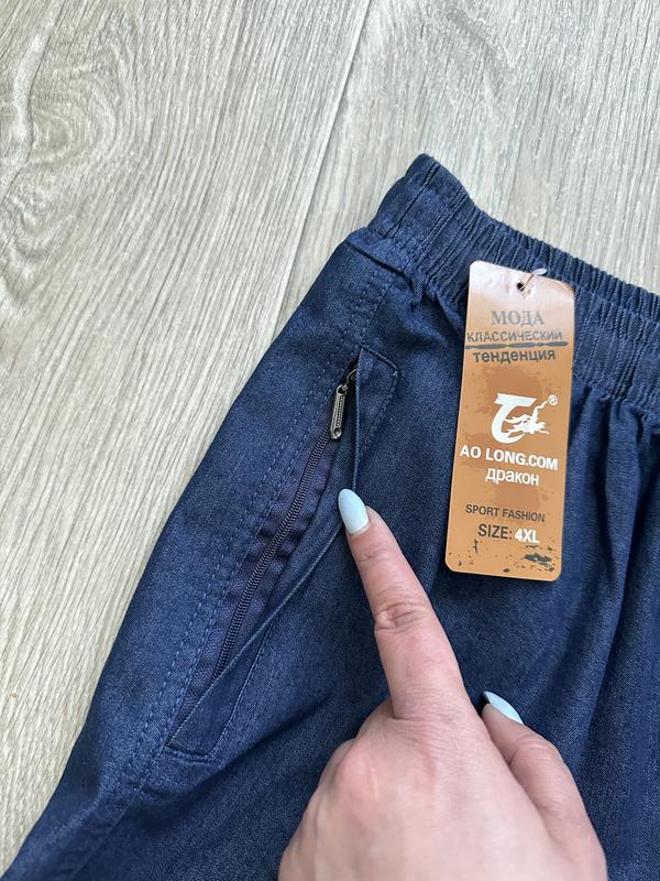В наявності сині тонкі літні джинси на резинці великих розмірів.