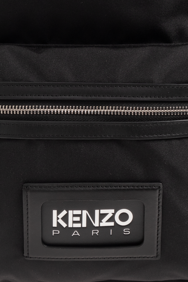Black backpack from Kenzo. Emblazoned with a white logo patch, this design features a two-way zip fastening, one zip pocket on the front, one half-round handle, adjustable shoulder straps, silver-tone metal hardware and one internal compartment with a slip pocket.