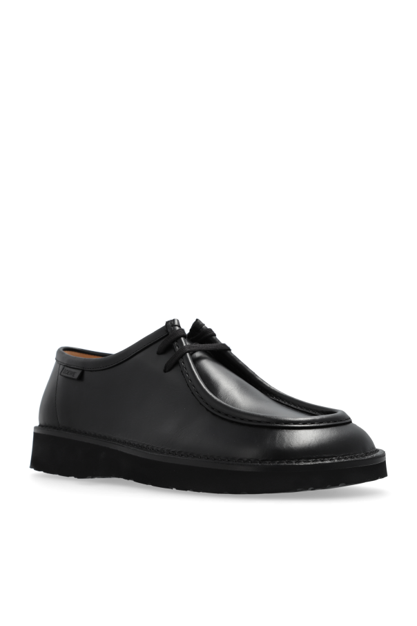 Introducing the Loewe Black Leather Derby Shoes, a masterpiece of craftsmanship and timeless design. These shoes epitomize sophistication and luxury, making them an essential addition to any distinguished wardrobe. Expertly crafted from premium black leather, these Derby shoes feature a classic open-lacing system and a rounded toe, exuding a refined and elegant aesthetic. The interior is lined with soft leather, ensuring unparalleled comfort throughout the day. Subtle yet striking details enhance their exclusivity: a discreet designer logo adorns the side, while the sturdy rubber sole provides exceptional grip and durability. The black laces seamlessly blend with the overall design, and the light brown inner lining adds a touch of contrast. Why Choose These Shoes? Timeless Derby design with a modern twist Luxurious black leather exterior and interior Discreet designer logo for an exclusive touch Durable rubber sole for excellent traction Comfortable fit with a soft leather lining