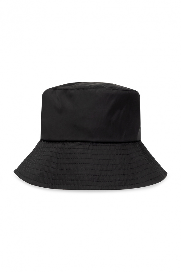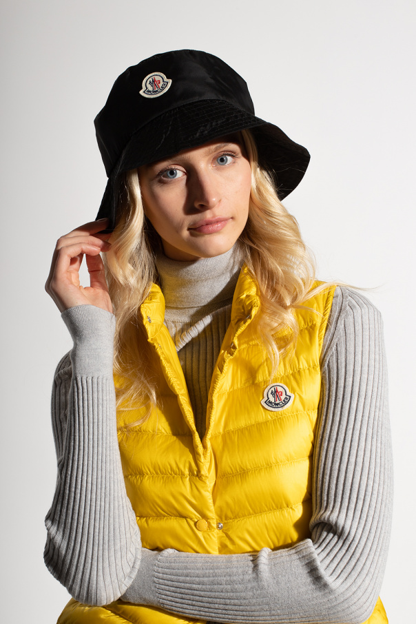 Black bucket hat with a logo patch in cream, navy and red from Moncler.