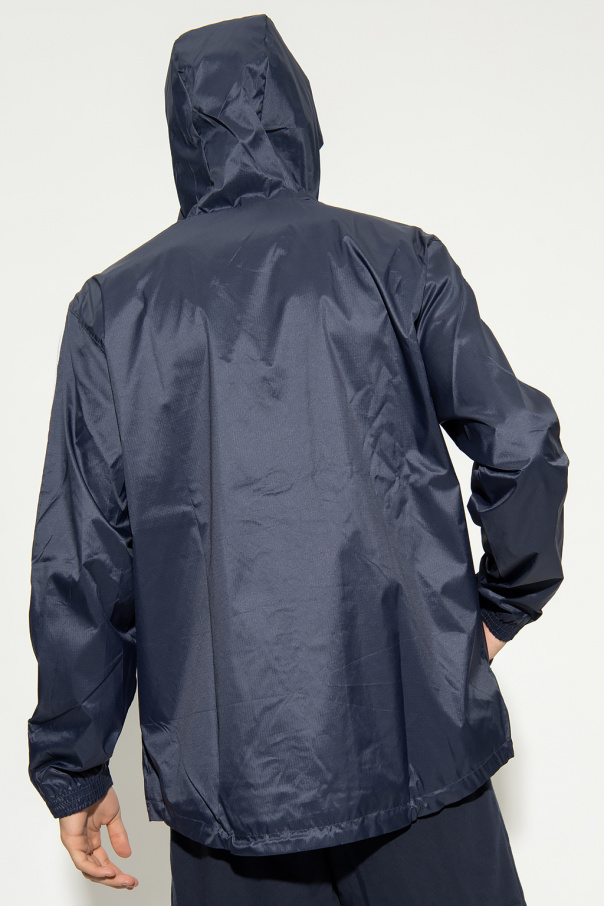 Navy blue hooded jacket from ADIDAS Originals. Crafted from recycled material, this style fastens via a zipper and showcases an embroidered logo on the front, the brand's signature three stripes on the sleeves, two zip pockets, a mesh lining, a drawcord-adjustable hem and long sleeves with elasticated cuffs.