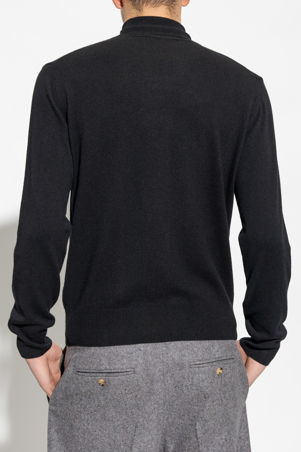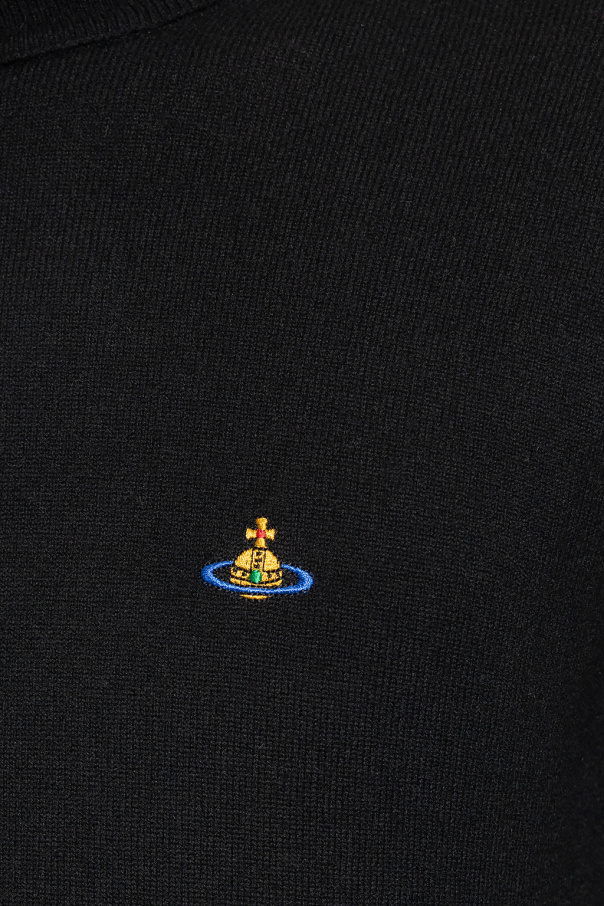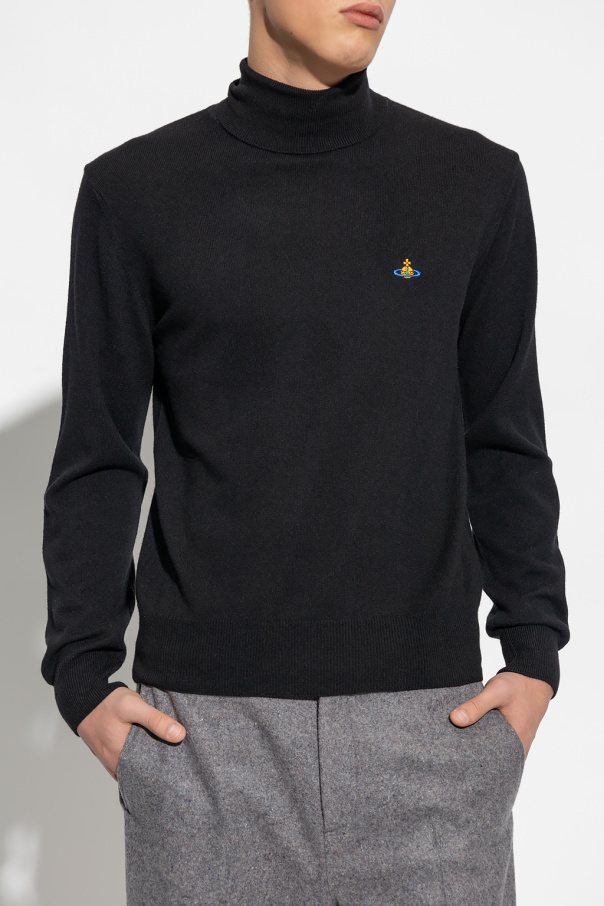 Black turtleneck sweater from Vivienne Westwood. Crafted from a wool and cashmere blend, this design is enriched by an embroidered multicolored logo pattern and ribbed edges.