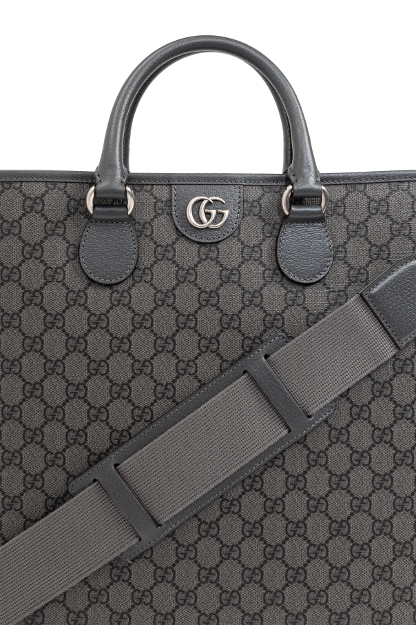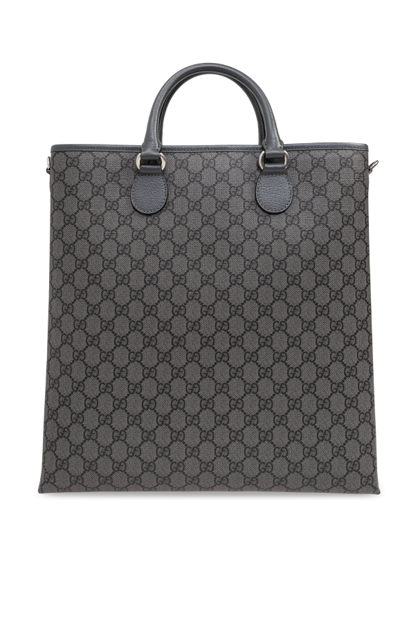 Introducing an epitome of sartorial elegance and functionality - the Men's Monogrammed 'Shopper' Bag by Gucci. Crafted from the finest calfskin leather and adorned with the iconic 'GG Supreme' canvas pattern, this shopper bag is a testament to Gucci's unparalleled craftsmanship and attention to detail. The bag's monochromatic grey palette, accented with a distinctive round logo emblem at its forefront, exudes sophistication and versatility. The bag's silhouette is decidedly rectangular, boasting clean, equal-length edges that lend it a structured and polished look. Its sturdy handles, reinforced with matching grey metal hardware, promise durability and ease of carrying. Moreover, the inclusion of an adjustable and detachable shoulder strap offers multiple carrying options, enhancing the bag's practical appeal. The interior, lined with a light contrasting fabric, features a zipped compartment for secure storage of essentials, alongside an additional slip pocket, ensuring organization and accessibility. Its closure is ingeniously designed with a magnetic snap, seamlessly blending security with style. Why Purchase This Product? Versatile Design: The shopper's sophisticated grey tone and monogram pattern offer a timeless accessory suitable for any ensemble. Exceptional Craftsmanship: Made with calfskin leather and 'GG Supreme' canvas, this bag stands as a hallmark of quality and luxury. Functional Elegance: Equipped with a magnetic snap closure, a zipped internal compartment, and an adjustable shoulder strap, it marries convenience with elegance. Unmistakable Identity: The prominent Gucci logo serves as a declaration of style and an investment in brand heritage.