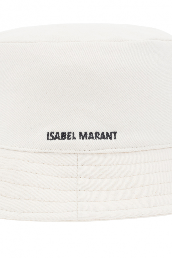 Cream hat from Isabel Marant. Made of cotton, this item showcases an embroidered logo in black.