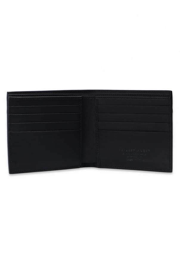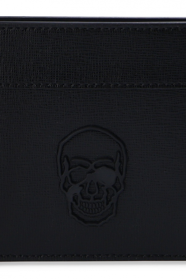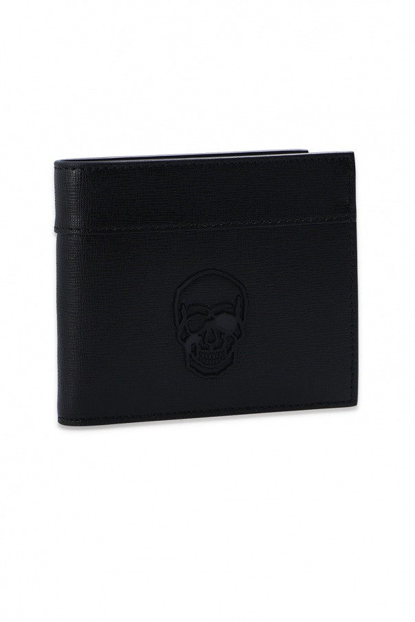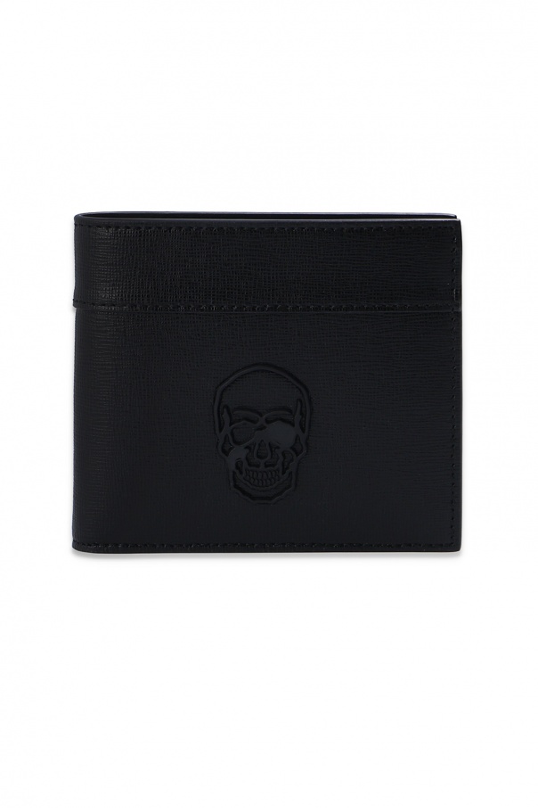Black bifold wallet from Philipp Plein. Crafted from textured calf leather, this item features a skull detail, two internal bill compartments and ten internal card slots.