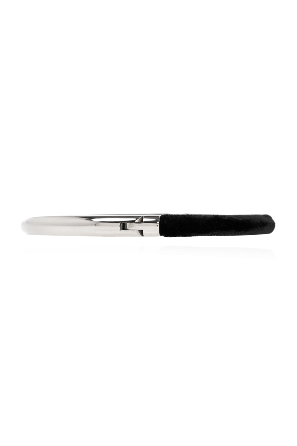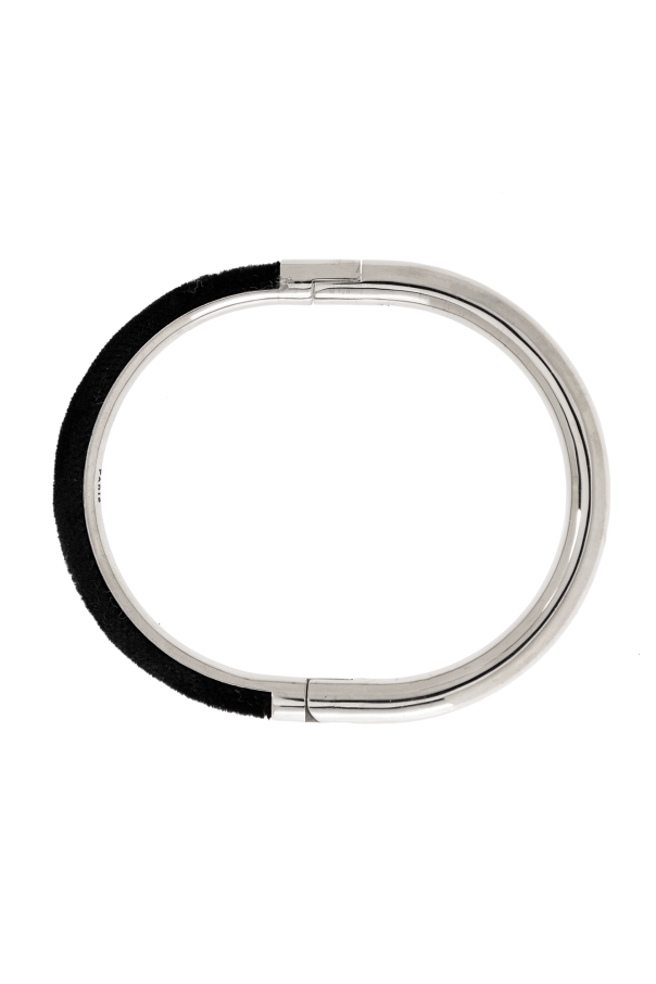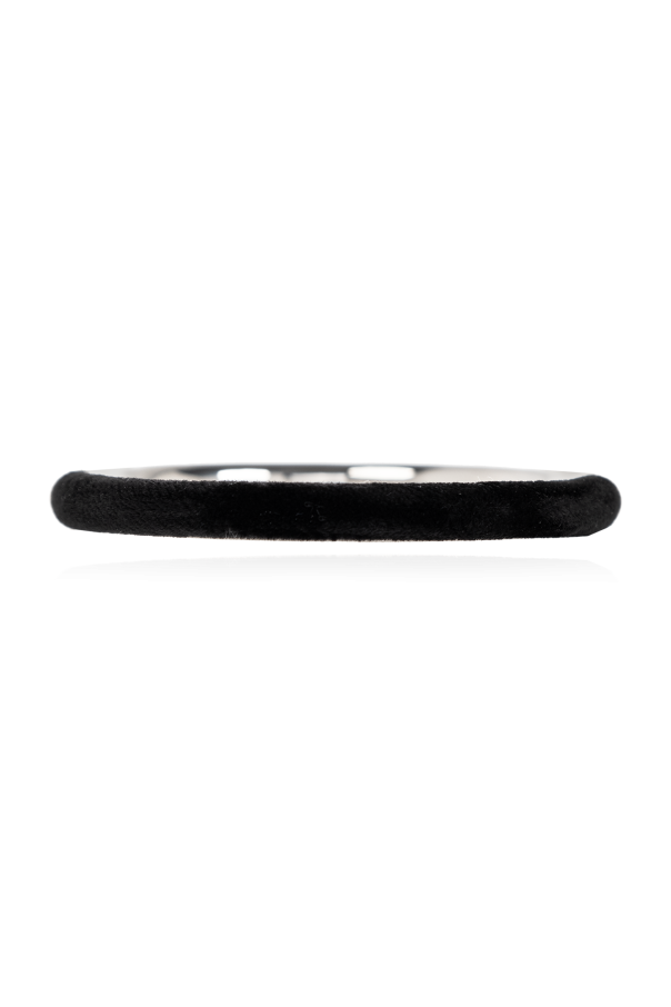 Silver-tone bracelet from Saint Laurent. Made of brass, this item fastens with a hinged hook closure and is decorated with a velvet insert in black.