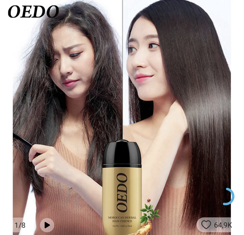 Эссенция для роста и укрепления волос от Oedo. В состав входят натуральные ингредиенты, такие как экстракты растений, витамины и масла. Эссенция содержит компоненты, которые способствуют росту волос и укреплению корней.