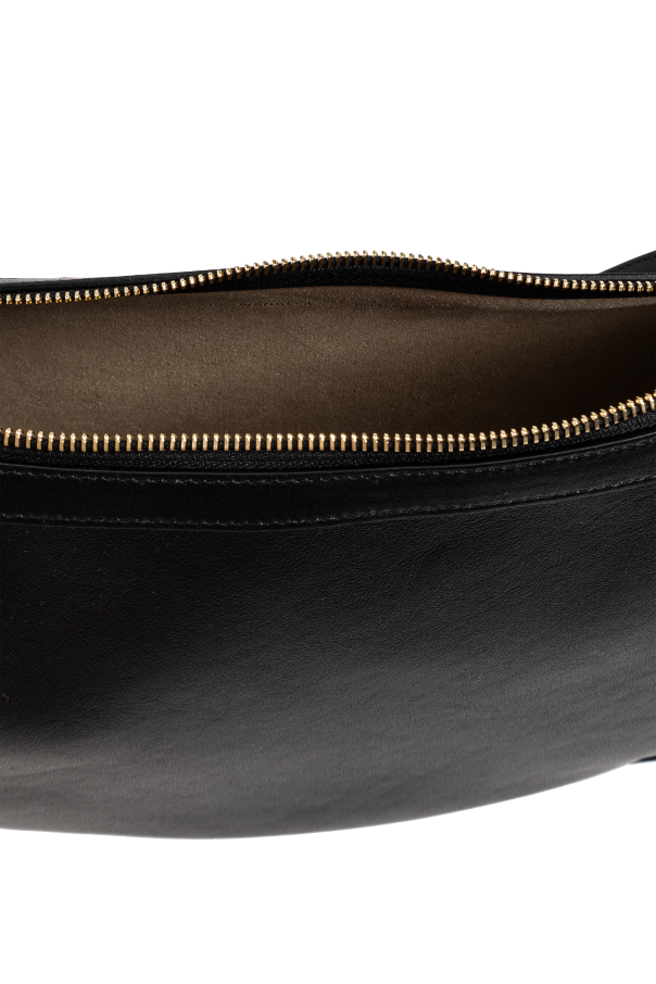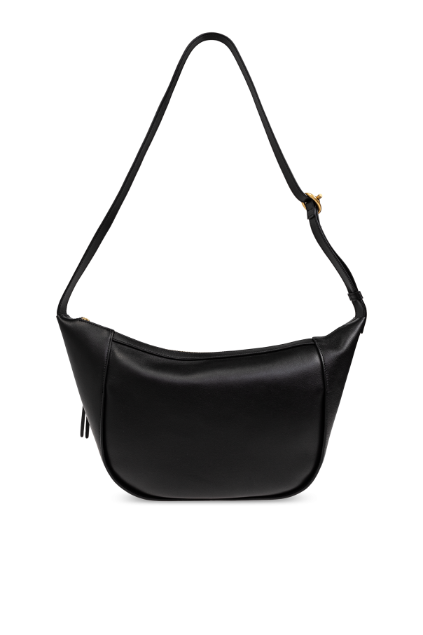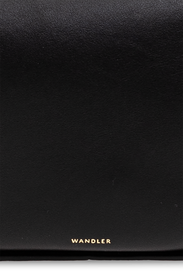 Introducing the "Maggie" shoulder bag, a masterpiece from the esteemed fashion brand Wandler. This exquisite accessory boasts a rounded, trapezoidal shape with softened edges, offering ample space for your daily essentials. Crafted from premium calfskin leather, the bag exudes sophistication with its smooth, uniform texture. The timeless black hue ensures versatility, seamlessly complementing any outfit. Adorned with golden hardware, including a zipper and adjustable buckle strap, the "Maggie" bag radiates an air of luxury and refinement. The bag features a wide, adjustable strap for comfortable shoulder wear, and the gleaming gold zipper ensures your belongings are securely enclosed. A subtle, golden Wandler logo graces the front, adding a touch of understated elegance. Inside, the bag is lined with light-colored suede, making it easy to locate your items within the spacious compartment. Why Choose This Product? High-Quality Materials: Crafted from premium calfskin leather and lined with soft suede. Elegant Design: Classic black color with luxurious golden accents. Spacious Interior: Ample room for daily essentials, with a light-colored lining for easy access. Adjustable Comfort: Wide, adjustable shoulder strap for a perfect fit. Signature Branding: Subtle, golden Wandler logo for added sophistication.