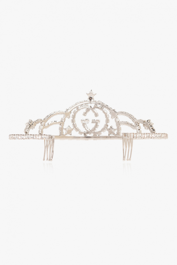 Silver-tone tiara embellished with crystals, Interlocking G logo and star motif from Gucci. Made of brass.