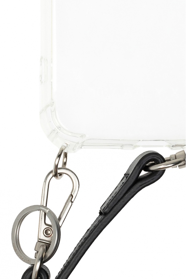 Transparent iPhone 12 case from 1017 ALYX 9SM. Printed with the brand's logo, this item features a detachable black strap accentuated with a silver-tone and black branded metal rollercoaster buckle that's highly recognisable for the brand.