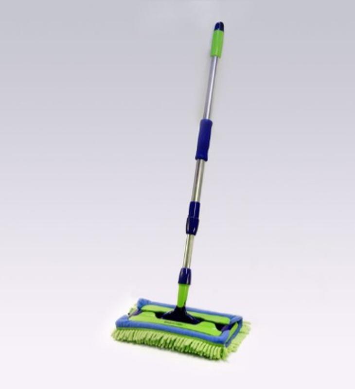Конструкционные преимущества Швабра имеет шарнирную платформу, которая отличается высокой подвижностью и легко возвращается в разные стороны. Платформа имеет закругленные края и специальные выступы, благодаря которым может очистить поверхности в любых труднодоступных местах. У нее есть резиновый чехол, фиксирующий съемную насадку и смягчающий давление на платформу во время работы. Платформа с помощью особого цангово-повортного крепления подключается к телескопической ручке. На ней есть удобные и надежные зажимы, фиксируют съемные насадки. Такие зажимы хорошо фиксируют насадки и быстро расстегиваются при смене. Швабра имеет телескопическую ручку, длина которой регулируется от 77 до 128 см. С помощью такого устройства можно мыть любые поверхности в доме, в том числе и потолки со стенами, не используя стремянки или стулья. На ручке имеет эластичная резиновая рукоятка, которая не будет скользить в руках при работе со шваброй.