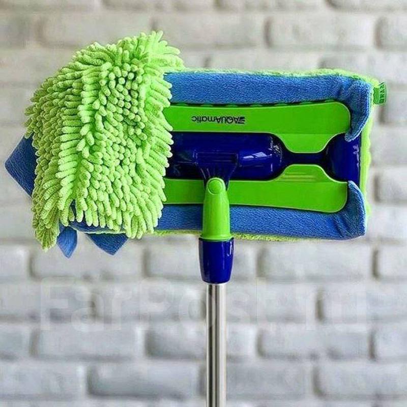 УНИВЕРСАЛЬНАЯ ШВАБРА С ДВОМА НАСАДКАМИ AQUAMATIC MOP Швабра - супер помощница. Выполнена из металлопластика, очень прочная, и если у Вас очень высокие потолки 3 метра 20 см, Вы спокойно (без лестницы ) можете ею пользоваться.