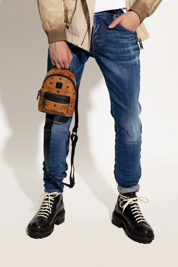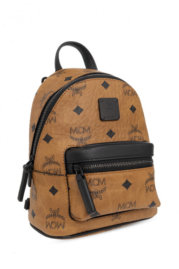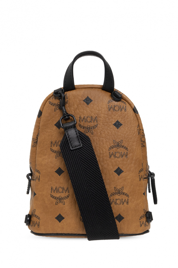 Brown ‘Stark’ one-shoulder backpack from MCM. Crafted from Visetos canvas accentuated with a black logo, this design fastens via a zip and showcases a metal plate with an engraved logo accompanied by a zip pocket on the front, a top handle, a fabric shoulder strap, silver-tone metal hardware and one internal compartment with a slip pocket.