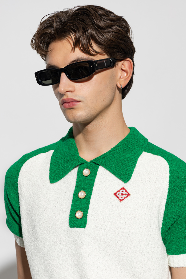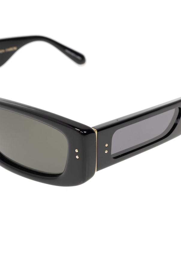 Black ‘Talita’ sunglasses from Linda Farrow. Made of hand-polished acetate, this model has a rectangular frame, temples with decorative lens inserts and grey lenses with UV protection. Case included.