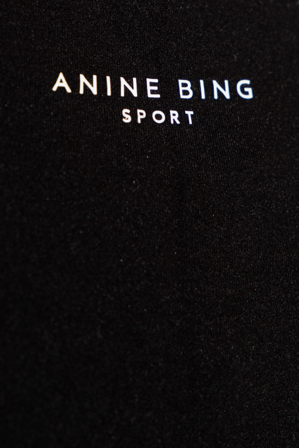 Black ‘Blake’ training leggings from Anine Bing, the ‘Sport’ collection. This pair features an elastic waistband and white logo print.