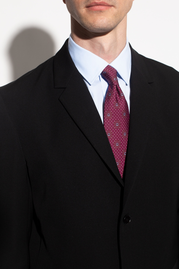 Maroon tie from Salvatore Ferragamo. Made of silk, this item showcases a pink and blue pattern with the brand's logo.