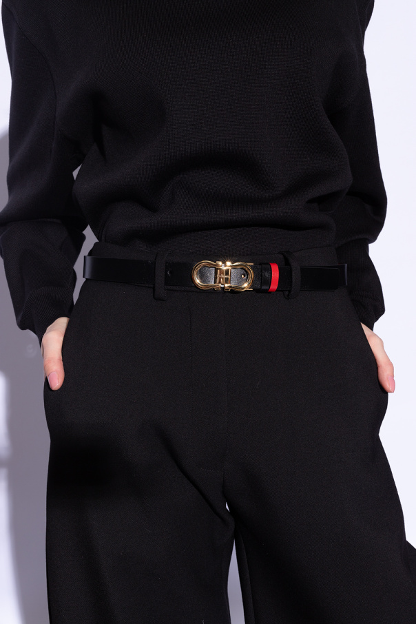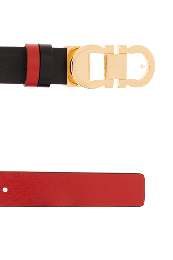 Black and red, reversible belt from FERRAGAMO. Made of calf leather, this item fastens with a logo buckle in gold-tone.