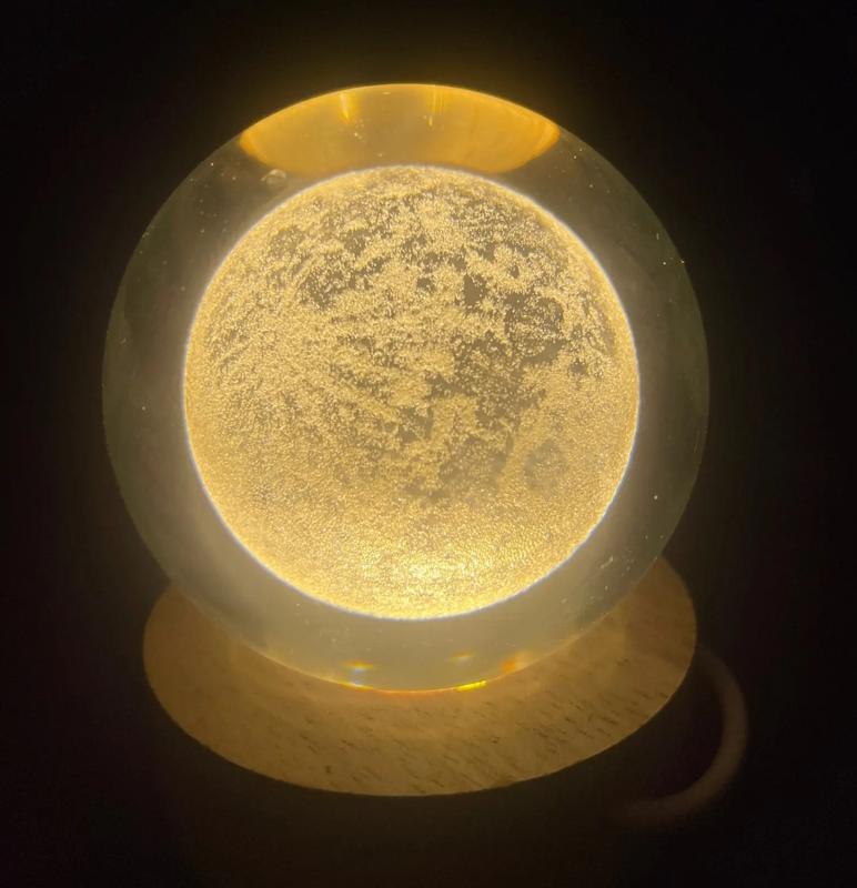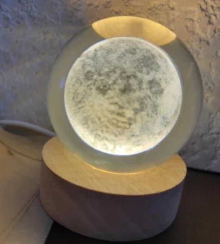 Нічник світильник скляна куля з Місяцем. Дерев'яна підставка. Діаметр кулі 6 см. Підключається за допомогою USB шнура.