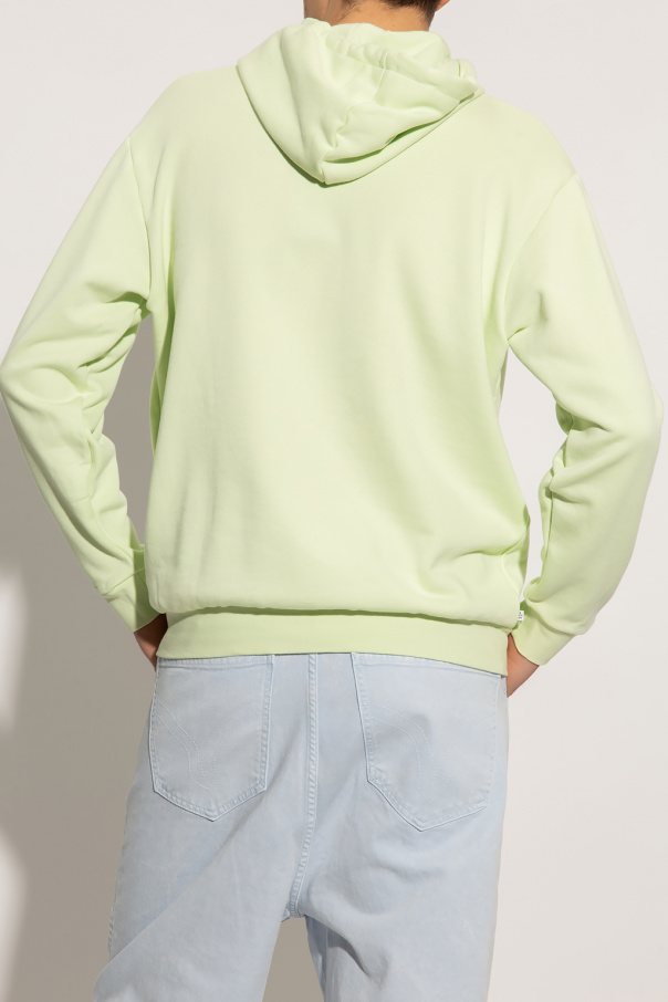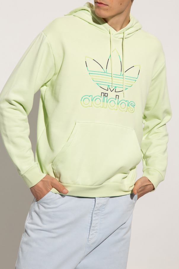Light green hoodie from ADIDAS Originals. Made of organic cotton, this garment features a drawstring hood, green, blue and navy Trefoil logo, slip pocket and ribbed trims at the hem and cuffs. This product contains a minimum of 50% natural and renewable materials to design out finite resources and help end plastic waste.