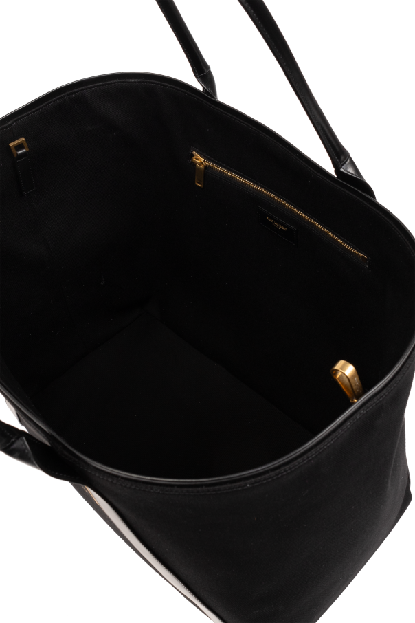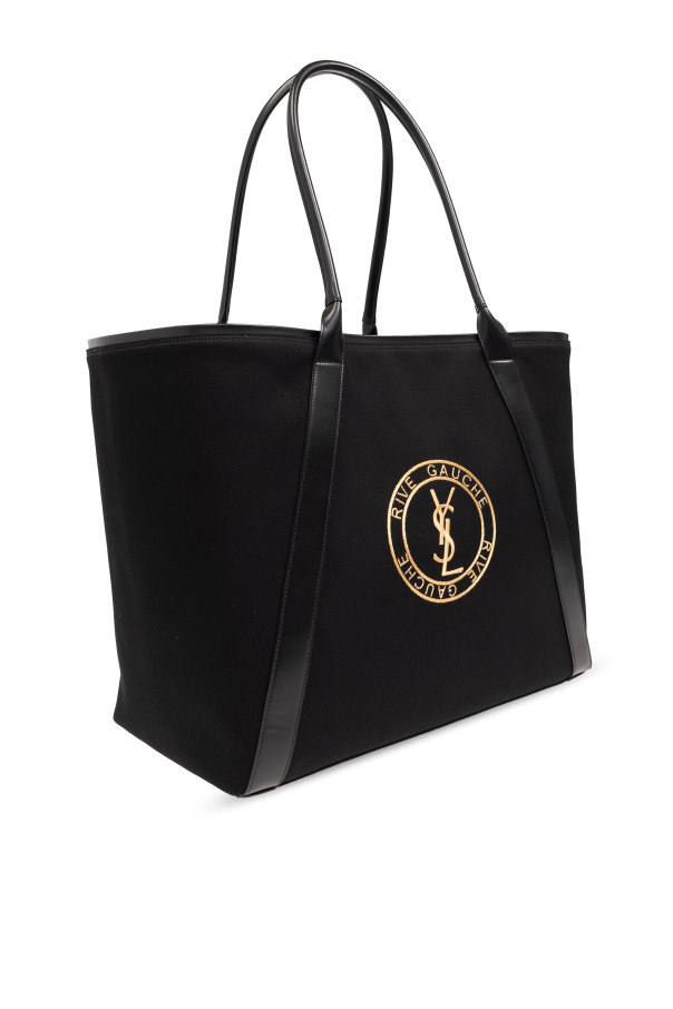 Introducing the epitome of luxury and functionality - the Saint Laurent Rive Gauche Shopper Bag. Crafted with meticulous attention to detail, this exquisite piece combines the durability of cotton with the refined elegance of calf leather in a sophisticated matte finish, showcasing a distinctive texture that hints at unparalleled craftsmanship. The bag's aesthetic is elevated by a prominent, gold-toned circular application bearing the iconic "YSL" symbol, set against the backdrop of "THE RIVE GAUCHE" inscription - a testament to its exclusive lineage. Its rectangular form, gently rounded corners, and flat base not only contribute to its sleek profile but also enhance its practicality by ensuring stability when placed down. Designed for the discerning individual, it features two long sleeves for comfortable shoulder wear, while its spacious interior, complete with a zippered pocket, promises ample storage for your essentials, marrying convenience with high fashion. Why Purchase This Product? Exclusivity and elegance encapsulated in the Saint Laurent branding and design. High-quality materials - a fusion of cotton and calf leather for durability and luxe. Functional design with a spacious interior and a secure zippered pocket. Eye-catching golden "YSL" logo application, signifying luxury and high status.