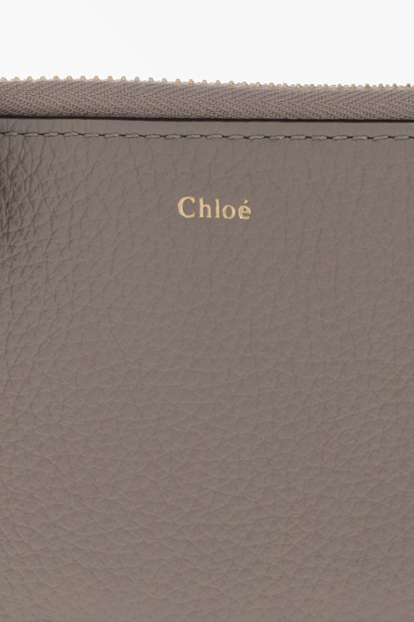Grey ‘Alphabet Small’ card holder from Chloé. Made of leather, this design features a zip with a round logo-engraved charm, embossed logo in gold-tone, card slot at the back, gold-tone metal hardware and one internal compartment with a keyring on a strap.