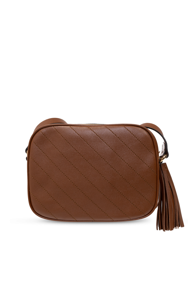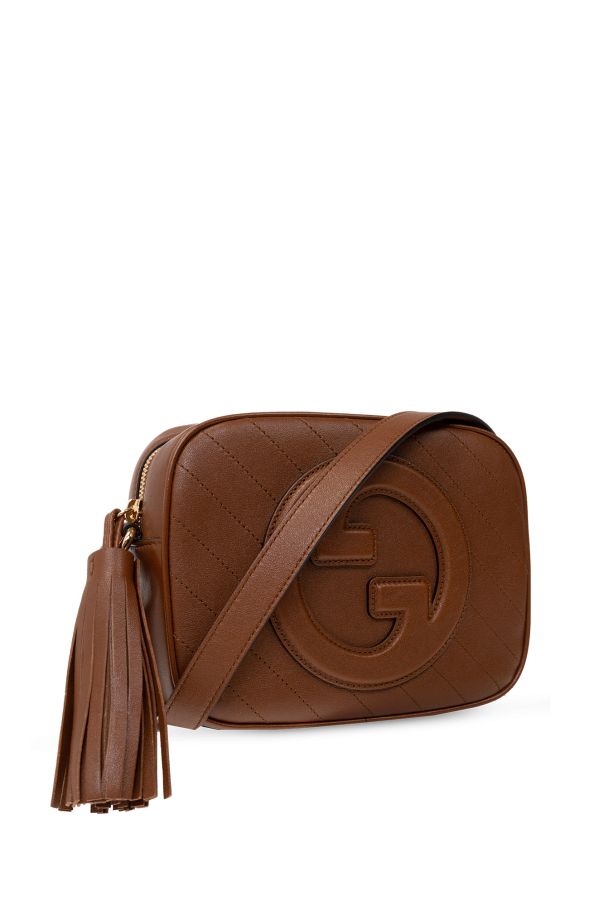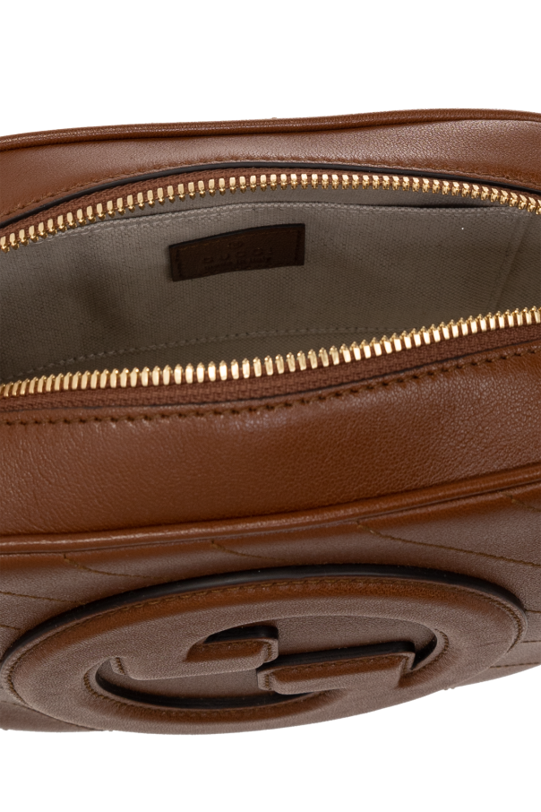 Brown ‘Blondie Small’ shoulder bag from Gucci. Crafted from lamb leather with a metallic finish, this design secures with a tasselled zipper and showcases a logo-shaped patch and exposed stitching details. It is complete with an adjustable shoulder strap and one internal compartment with a card slot.