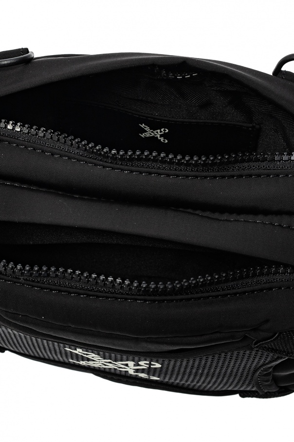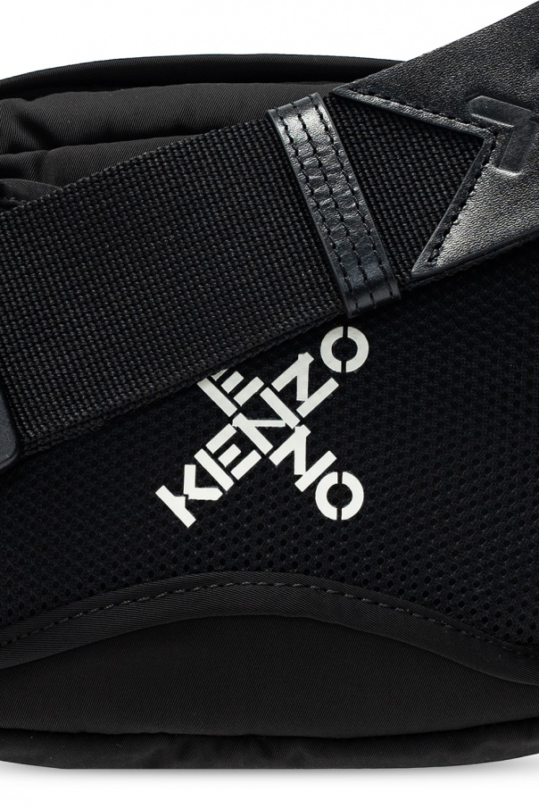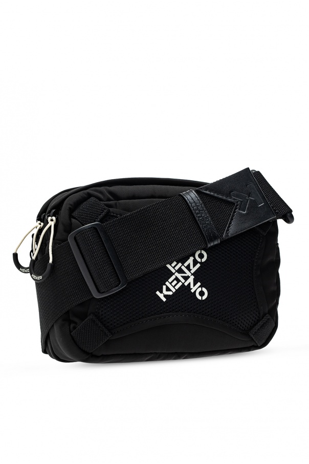 Black shoulder bag from Kenzo. Fastened with two zips, this item features a mesh panel with a white logo print, magnetic snap pocket at the back, removable adjustable shoulder strap and two internal compartments.