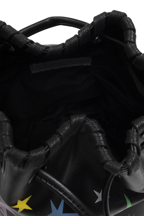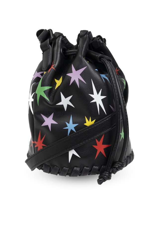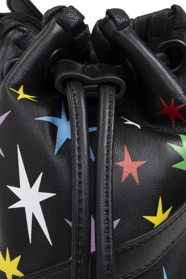 Introducing the Torba na ramię typu 'worek' from the distinguished Stella McCartney Kids collection. This exquisite bag, designed for the discerning young fashion enthusiast, epitomizes elegance and playful sophistication. Crafted from smooth eco-leather in a timeless black hue, this bag features a classic bucket shape with a rounded base. Adorned with vibrant, multicolored stars in hues of white, red, blue, green, yellow, and purple, it exudes a lively, child-friendly charm. The top of the bag is cinched with a black drawstring, which doubles as a stylish embellishment. Decorative stitching along the bottom edge adds a refined touch, enhancing its unique aesthetic. Inside, the bag offers a spacious compartment with a sleek, functional finish, all in black. Designed without visible logos or designer inscriptions, it maintains a clean, minimalist exterior. The shoulder strap is seamlessly integrated into the bag's structure, ensuring comfort and ease of wear. Why Choose This Product? Exclusive design from Stella McCartney Kids. High-quality eco-leather material. Playful and unique multicolored star pattern. Functional and spacious interior. Comfortable, integrated shoulder strap.