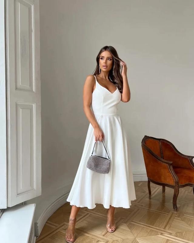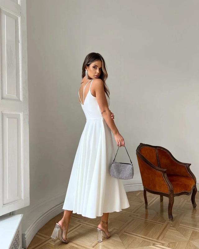 🔥Ефектна коктейльна сукня приталеного силуету, спідниця повне сонце, спину підкреслюють подвійні бретелі, довжина міді.