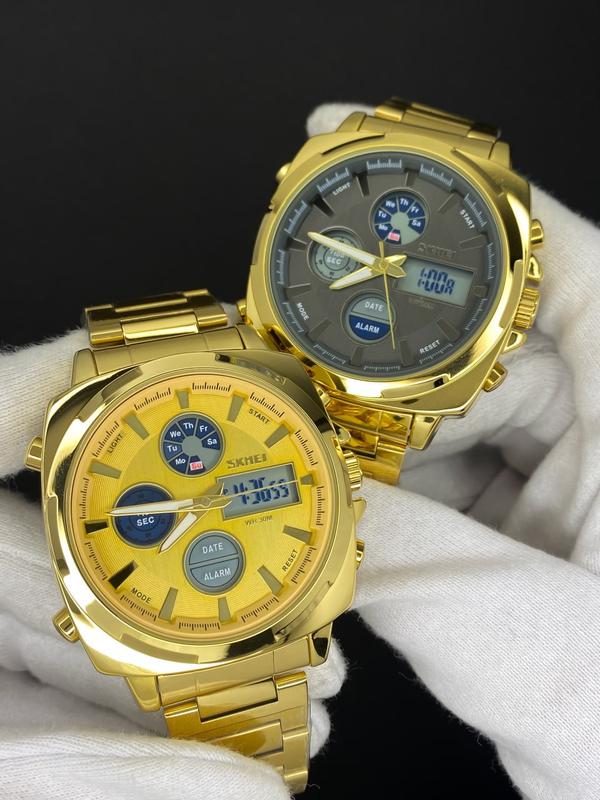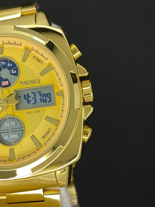 Материал ремешка:Сталь ,Пол:Для мужчин ,Стиль:Классический ,Механизм:Кварцевый ,Тип крепления:Браслет ,Циферблат:Стрелочный , Электронный ,Водонепроницаемость:До 30 м (дождь, умивание) ,Функции:Будильник , Подсветка , Секундомер ,Описание