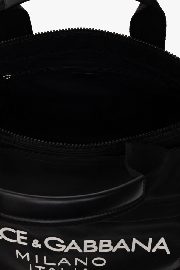 Black ‘Sicilia DNA’ shopper bag from Dolce & Gabbana. Crafted from fabric with calf leather trims, this model fastens with a two-way zip and is decorated with a rubber logo appliqué in white. It is complete with a front zip pocket, two half-round handles, detachable, adjustable shoulder strap, silver-tone metal hardware and one internal compartment with two slip pockets and one zip pocket.