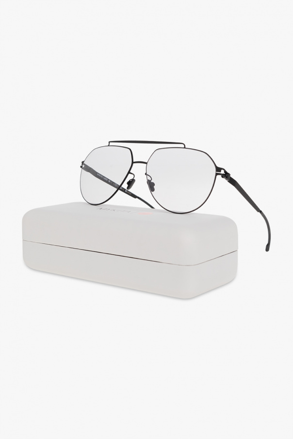 Black ‘Ml13’ optical glasses from Mykita x Leica. Crafted from stainless steel, this aviator pair features a double bridge made of durable Mylon, silicone nose pads and narrow temples with patented screwless hinge systems. Comes with a case. Handcrafted in Berlin.