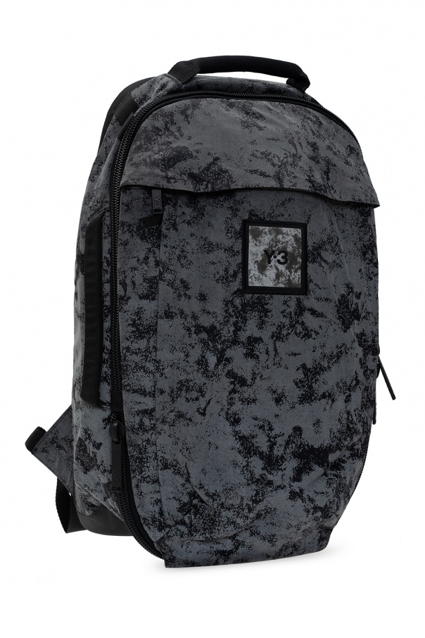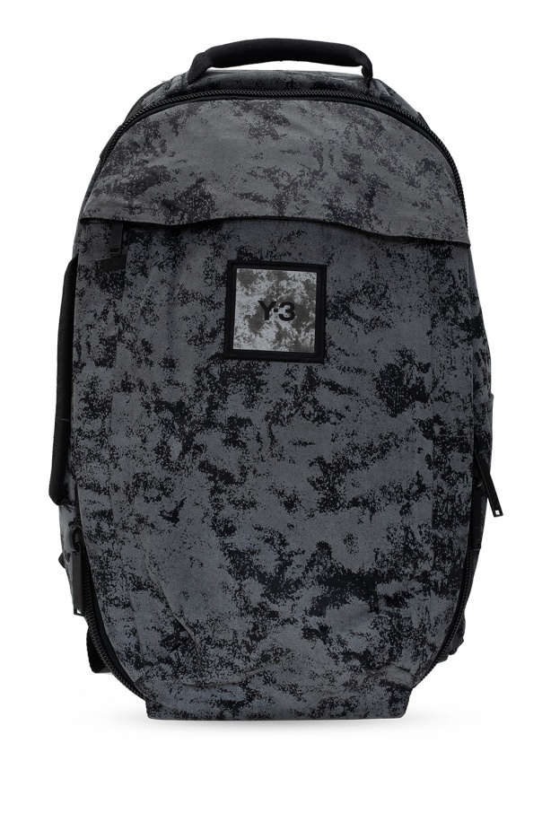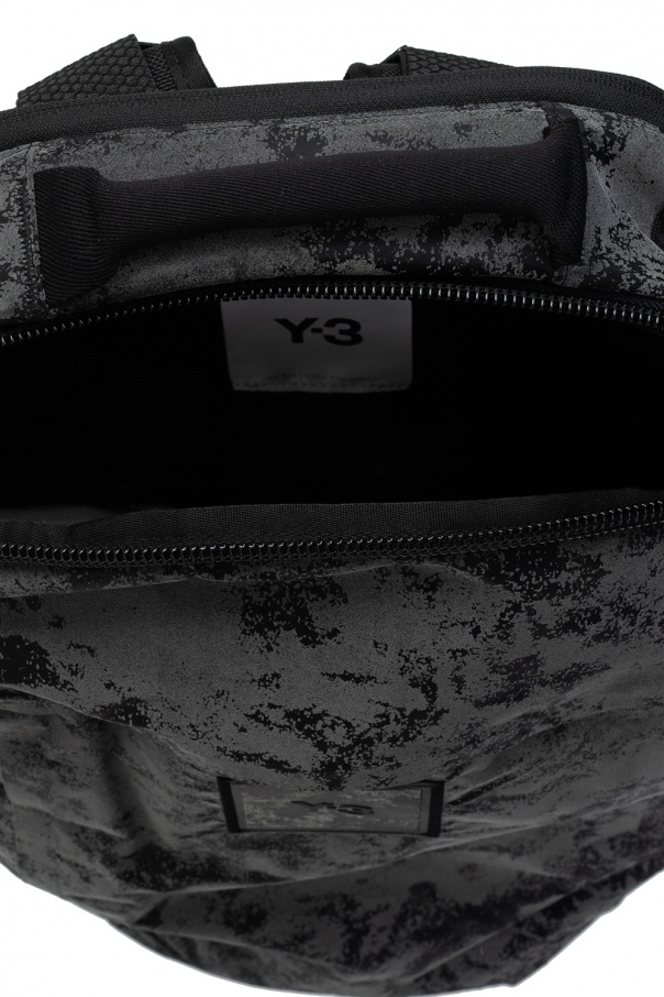 Black and grey backpack with multiple pockets from Y-3 Yohji Yamamoto. Featuring a reflective effect, this model features two zipped compartments, logo patch, two half-round handles and adjustable shoulder straps.