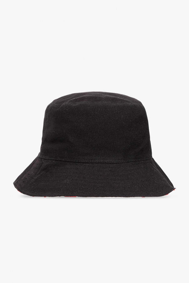 Black bucket hat with a gold-tone recycled brass logo appliqué from Vivienne Westwood. Made of locally farmed cotton canvas, this design forms part of the brand's ‘Made in Kenya’ collection with the ‘Ethical Fashion Initiative’ that helps to support thousands of people from marginalised communities.