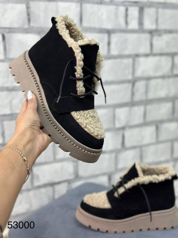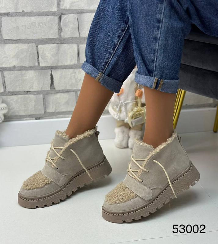 Матеріал: натуральна шкіра/замша, висота 9.0 см, утеплювач хутро (набивна вовна) 🧶