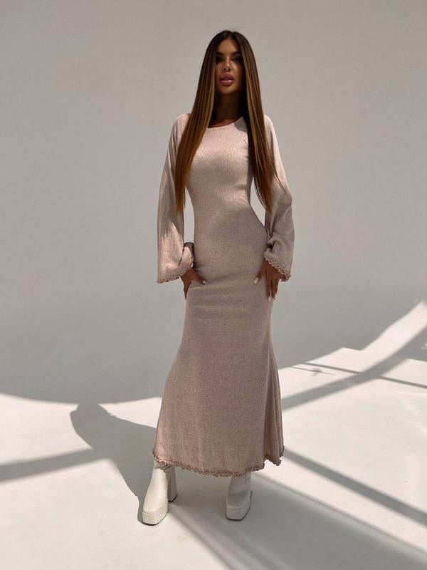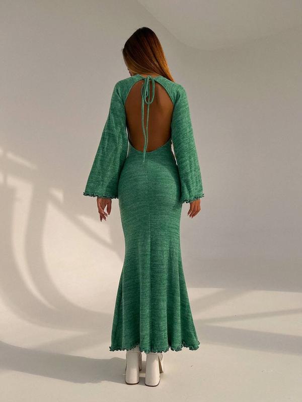Трикотажное платье макси с расклешенными рукавами и открытой спиной