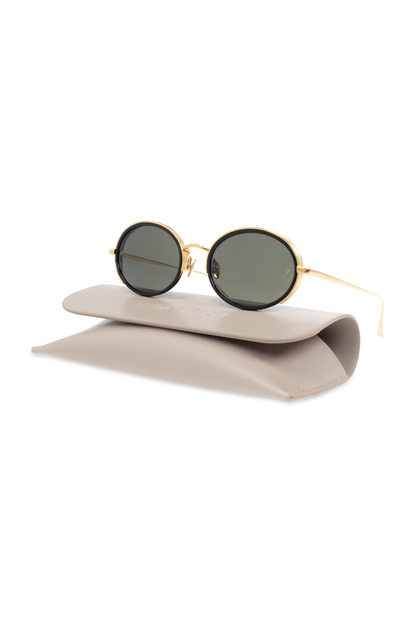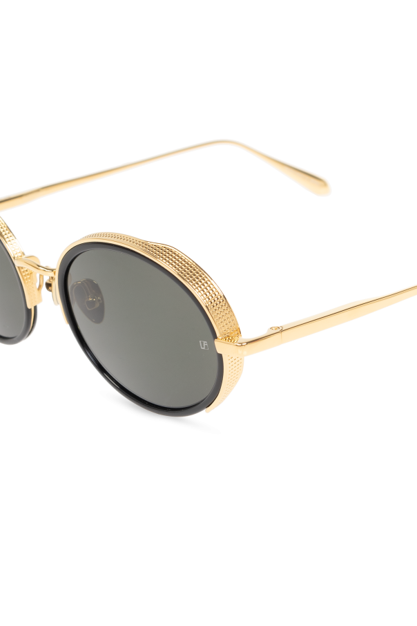 Introducing an epitome of sophistication and timeless style—the Linda Farrow Round Sunglasses. Crafted with meticulous attention to detail, these sunglasses feature round lenses with gracefully rounded edges, encapsulated in luxurious gold-finished metal frames. The dominant gold hue of the frames, complemented by the deep black of the lenses, exudes elegance and a touch of opulence. While the absence of visible logos or markings on the provided images keeps the brand's mystique, the refined design speaks volumes of its high-end pedigree. Worn effortlessly by a woman donning a striped suit, these sunglasses not only promise to shield your eyes with ultimate UV/UVB protection but also to elevate any ensemble with an air of chic sophistication. Why Purchase These Sunglasses? Elegant Design: The round lenses and gold-finished metal frames offer a timeless look that transcends trends. Quality Materials: Crafted from 100% metal, these sunglasses promise durability alongside luxury. UV Protection: Equipped with high-quality lenses, they provide excellent protection against harmful UV/UVB rays, safeguarding your vision. Designer Appeal: As part of the exclusive Linda Farrow collection, these sunglasses stand as a testament to fashion-forward craftsmanship.