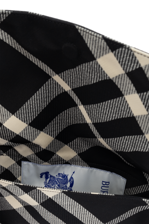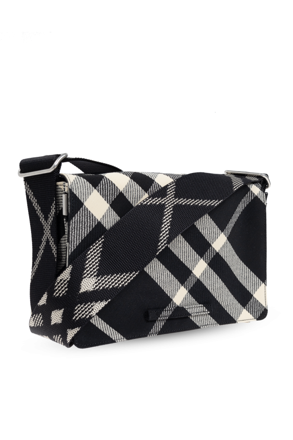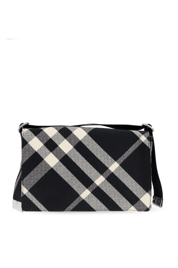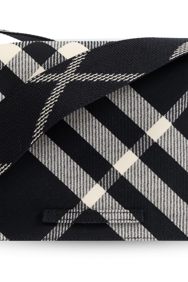 Introducing the "Trench" shoulder bag by Burberry, a seamless blend of classic aesthetics and modern functionality. This exquisite piece is defined by its distinctive large-scale check pattern, rendered in sophisticated black and white, evoking the timeless allure of tartan. Crafted from a superior blend of polyester and cotton, with an interior that mirrors the external quality, the "Trench" promises durability and refined texture reminiscent of high-grade wool. The bag’s rectangular silhouette with soft lines and rounded corners offers a casual yet elegant appeal, making it an ideal accessory for the discerning gentleman. Its adjustable black shoulder strap, constructed from thick, durable fabric, ensures comfort and resilience. A discreet magnetic snap closure secures the contents, while the interior, organized into two separate compartments and a slip pocket, enhances functionality. Notably absent external brand markings underscore the bag’s luxurious discretion, save for an interior designer logo tag, affirming its prestigious origins. Why Purchase This Product? Exclusive Burberry design with a classic check pattern High-quality material blend for durability and elegance Functional interior with multiple compartments for organization Adjustable and sturdy shoulder strap for comfort and longevity Subtle luxury with minimal external branding
