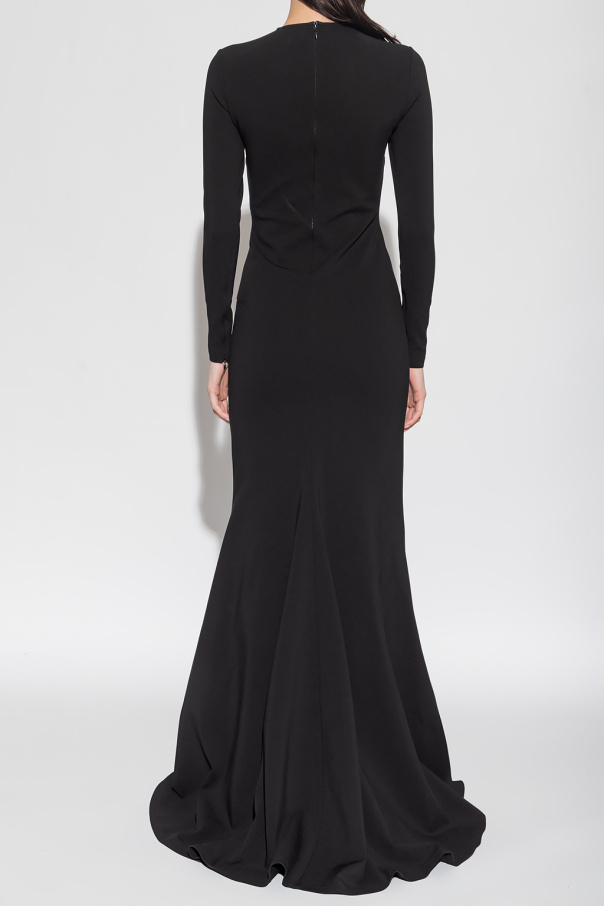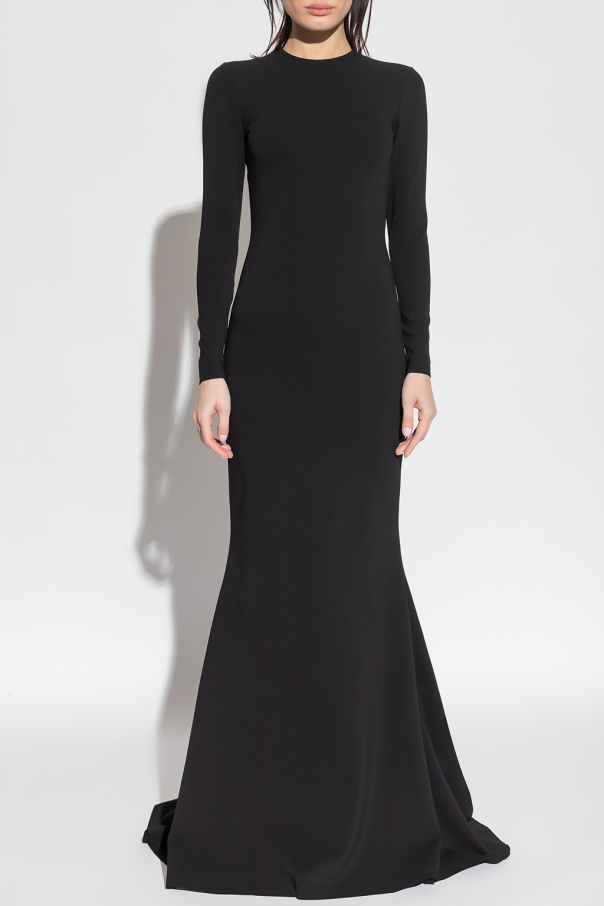 Black maxi dress from Balenciaga. Fastened with a concealed back zip and hook, this fitted design has long sleeves with zip details.