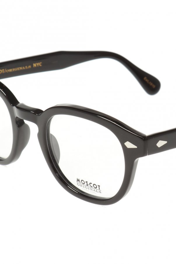 Black ‘Lemtosh’ eyeglasses from Moscot. Embellished with printed logo and silver-tone metal rivets.