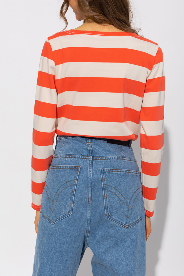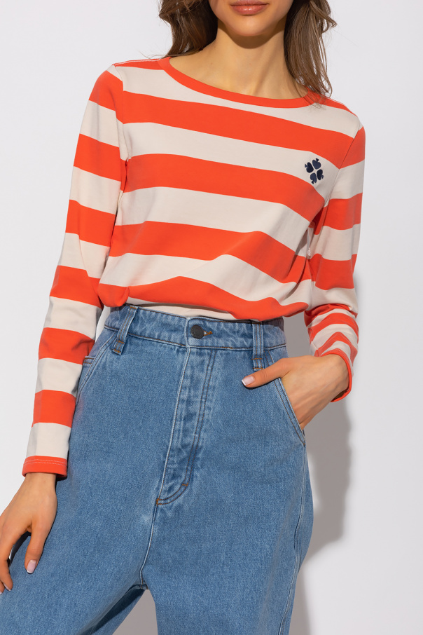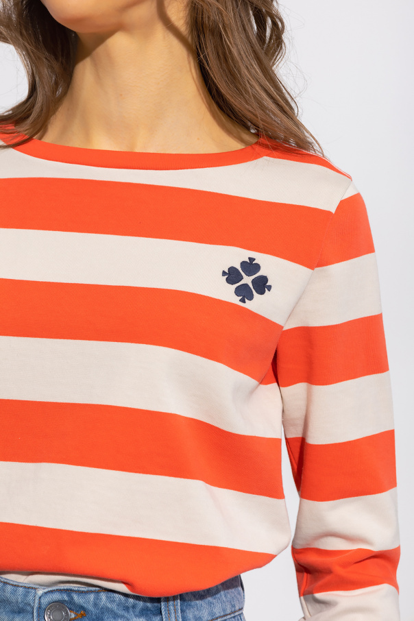 Cream and orange t-shirt from Kate Spade. Crafted from cotton, this long sleeve design features a navy ‘Spade Flower’ embroidery, stripe pattern and ribbed crew neck.
