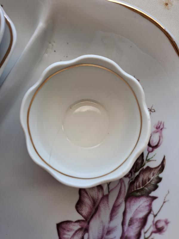 Столовый фарфоровый сервиз времён СССР, соединённый - Коростеньского и Городницкого фарфоровых заводов, рисунок на них одинаковый,Состояние б/у идеальное,без трещин,сколов и царапин, красиво смотрится.,отправляю только новой почтой ,упаковываю там же,учитывайте это.