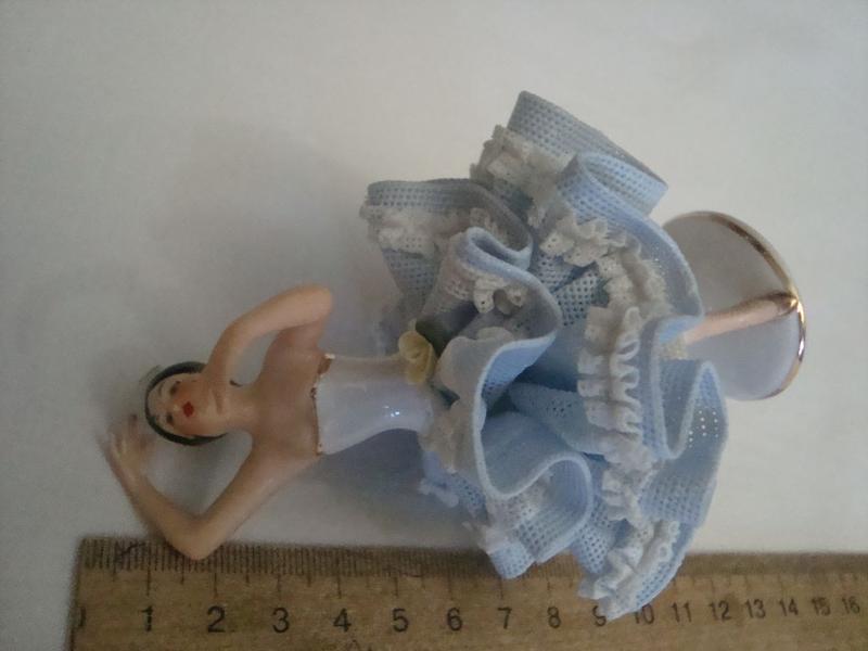 Шикарная Статуэтка Прима - Балерина Дрезденский Кужевной Фарфор DRESDEN ГерманияОЧЕНЬ КРАСИВАЯ ! СТАТУЭТКА В ОТЛИЧНОМ КОЛЛЕКЦИОННОМ СОСТОЯНИИ БЕЗ СКОЛОВ ТРЕЩИН И РЕСТАВРАЦИЙ ! ВЫСОТА 11 СМ. Дрезден считается родоначальником кружевного фарфора, самые старые великолепные фигурки кружениц обычно родом из этих мест. Кружевной фарфор также называют дрезденским. Очень интересно, как производят эти кружева, а делают их из настоящих кружев, опуская в фарфоровую массу, после чего формируют складки на платьях и обжигают. При обжиге кружева выгорают и образуют вот такие нереально красивые фигурки!