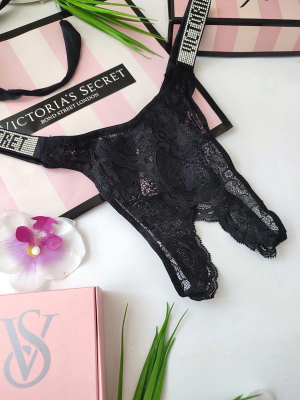 Shine Strap Crotchless Lace Brazilian Panty🍓Низкая посадка