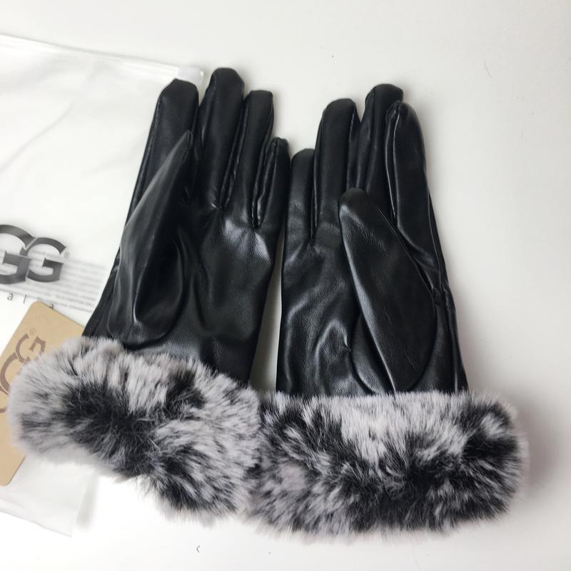 Кожаные утепленные перчатки Ugg с мехом кролика