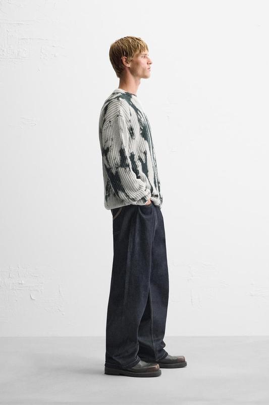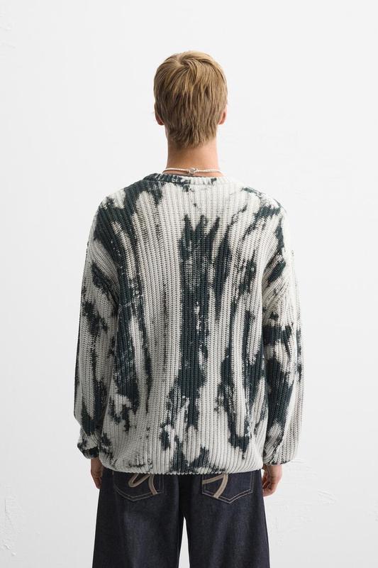 Свитер свободного кроя из штапельного хлопка с круглым воротником и длинными рукавами и окантовкой в рубчик.